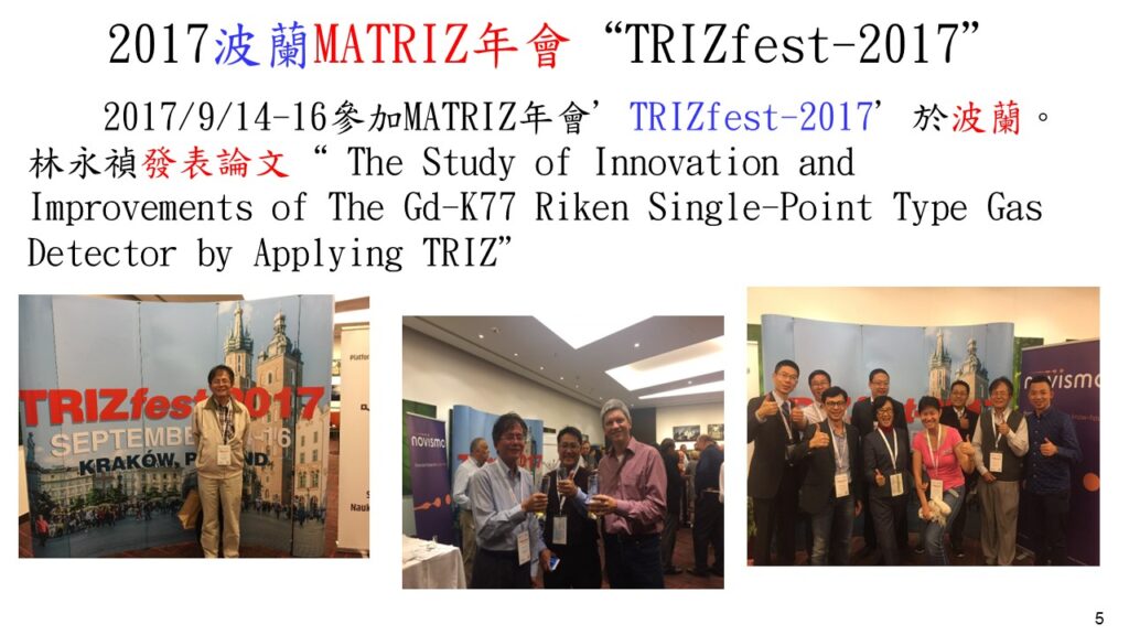 2017/9/14-16參加MATRIZ年會國際研討會TRIZfest-2017於波蘭並發表論文