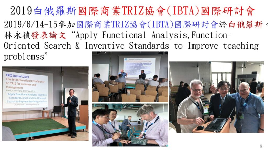 ◆ 波折的國際參與:艱難的簽證與滯留為了將台灣的 TRIZ 發展水準提升至國際水平,我積極參與國際研討會,分享研究成果。我記得 2019 年,為了參加在白俄羅斯舉辦的國際商業 TRIZ 協會 (IBTA) 國際研討會,那是一次充滿波折的旅程。申請簽證的過程就已經很困難,旅途中又遭遇了極大的不確定性。