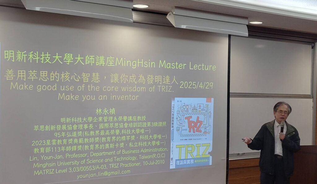 2025年4月受邀請於明新科技大學「大師講座」演講「善用萃思的核心智慧,讓你成為發明達人」2025年9月到嘉義市洪雅書房新書舉辦《TRIZ理論與實務-讓你成為發明達人》新書發表會